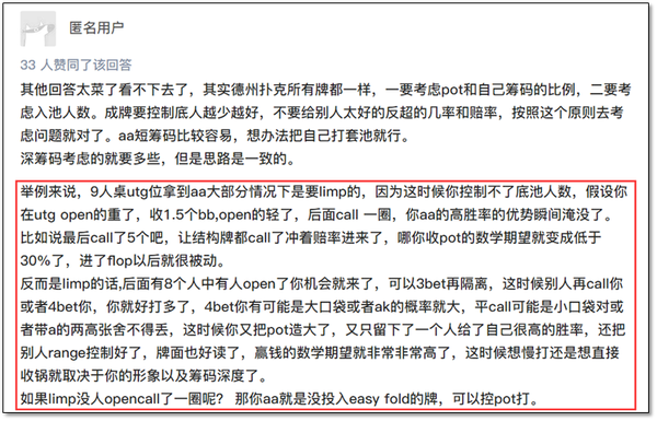 以德扑圈/德友圈为例,新手玩家在前位拿到超对会倾向于平跟,期望后手位玩家加注后做3bet,这种决策思路匿名用户已经解释的很清楚了: